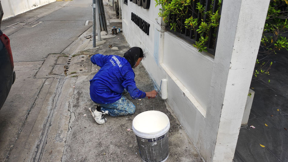 ทาสีกำแพง และรั้วเหล็ก