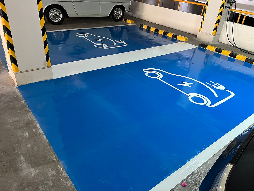 - งานทาสีพื้นช่องจอดรถ EV- งานตีเส้นตัดสี